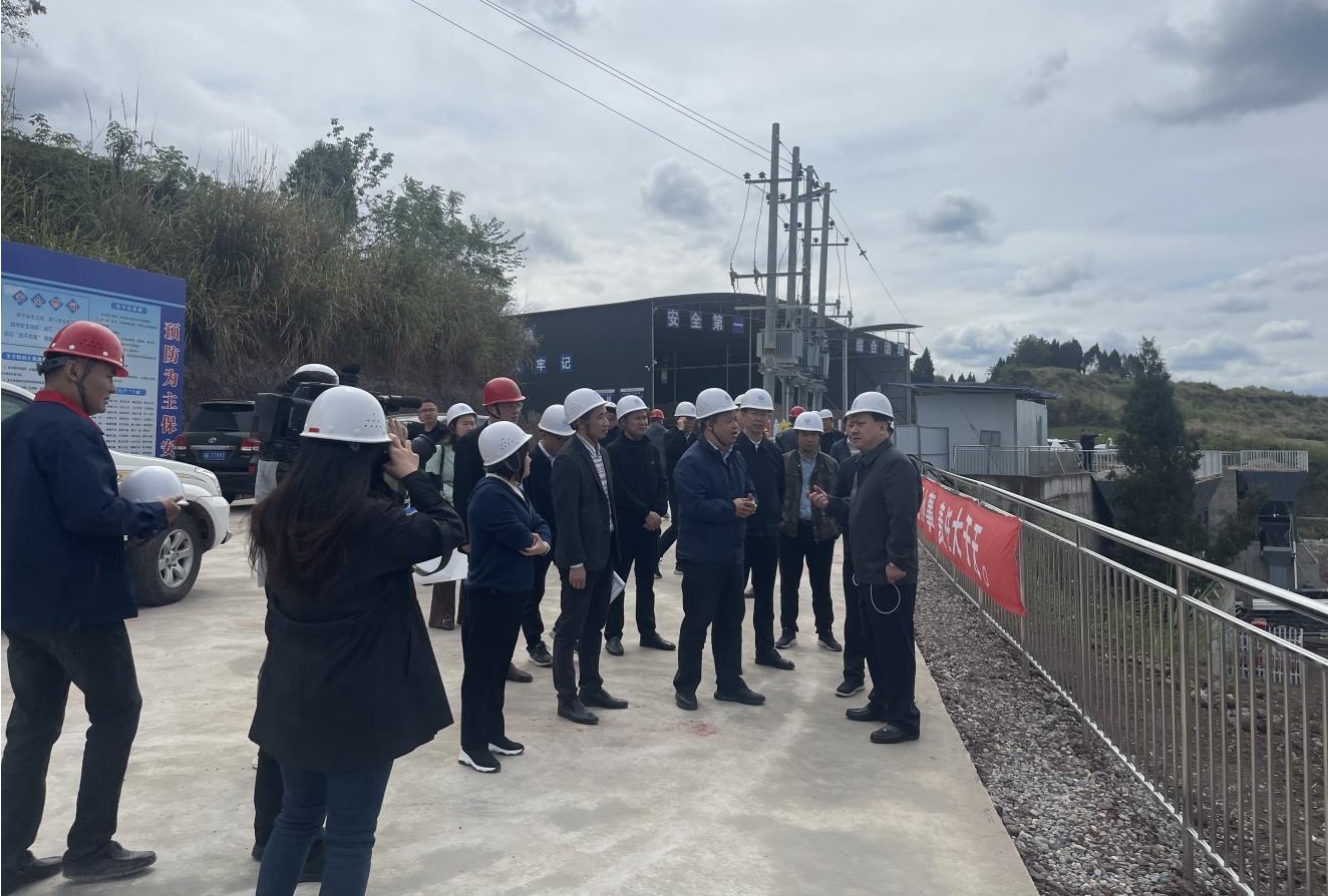 4月24日,四川省内江市市委副书记、市长李丹一行到第五分公司承建的资中县两河口水库工程调研,内江市水利局党委书记、局长郭英,资中县委副书记、县长唐荣,副县长杨靖陪同调研。