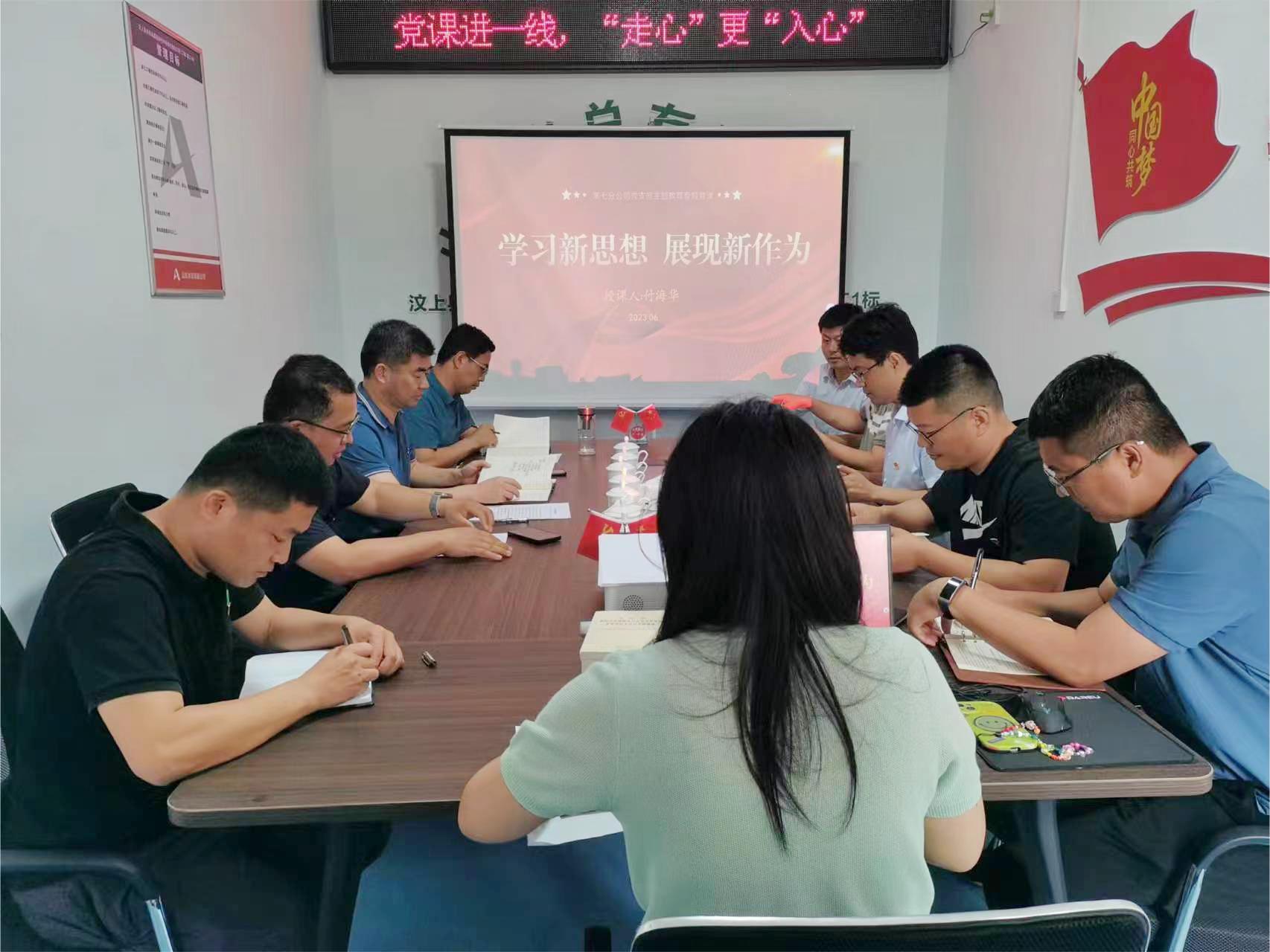 付海华以“学习新思想 展现新作为”为题,结合第七分公司党建、业务工作实际情况,围绕“领会精神实质 凝聚思想共识”“遵循特点规律 创新方式方法”“加强组织领导 确保学习成效”“持续将教育成果转化为推动公司业务高质量发展的生动实践”四个方面,深入进行阐述。付海华指出,作为党的国有企业,我们要始终做到“中央有部署、公司见行动”,着力在学思想、强党性、重实践、建新功上下苦功夫、见真成效。